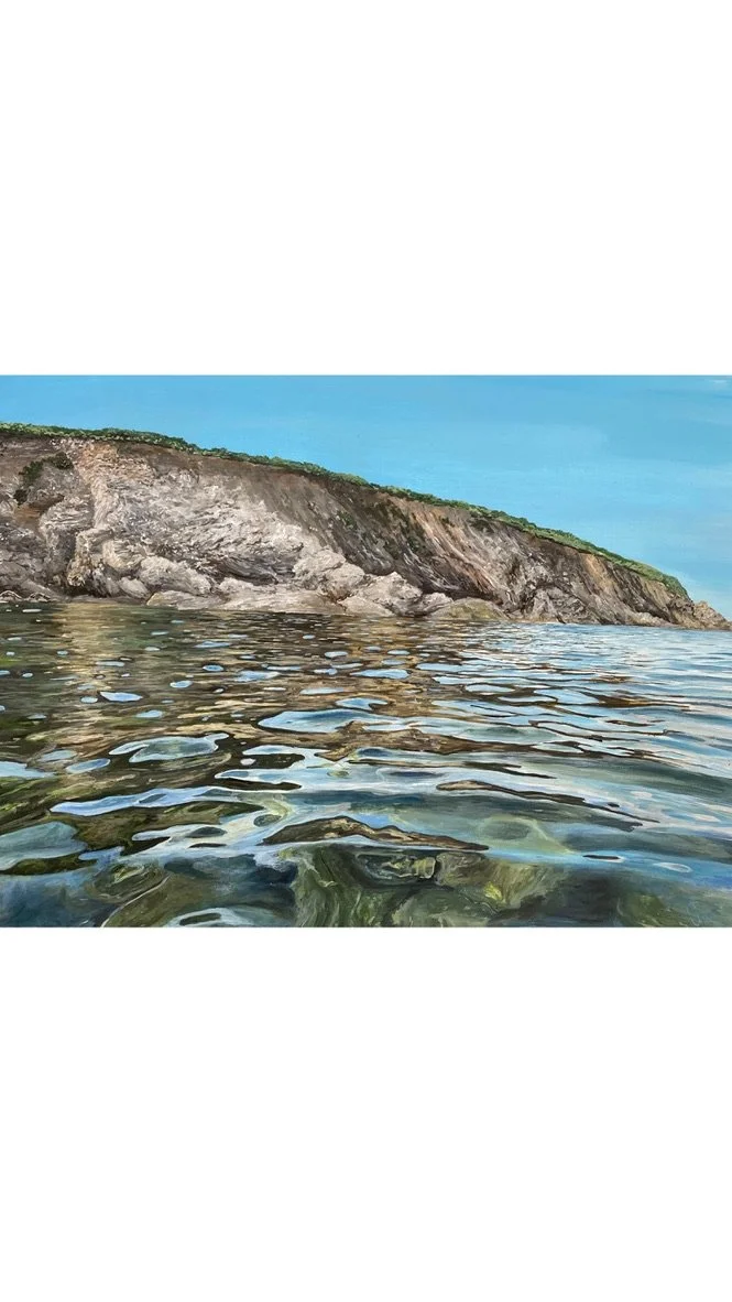 Her process starts on the water itself, often out on her paddleboard, where she takes reference photos, sketches and notes to remember the mood, movement and the energy of the sea. Back in her studio, she recreates those moments through her paints.