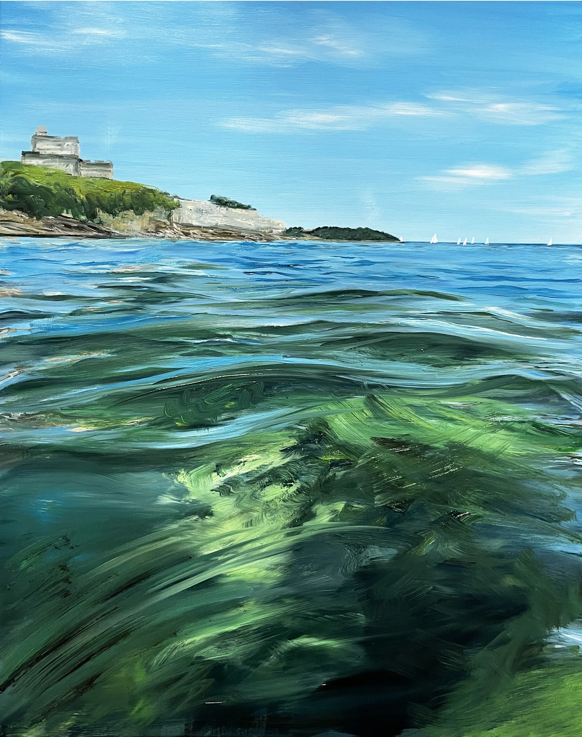 ‘I find that painting is a fine balance between spontaneity and knowledge. I fell in love with the ocean during lockdown, when daily walks along the coastline reminded me how calming and therapeutic it can be. Painting became my way of bringing that feeling home and sharing it with others. I love creating personal, unique pieces that reconnect people with special memories’.