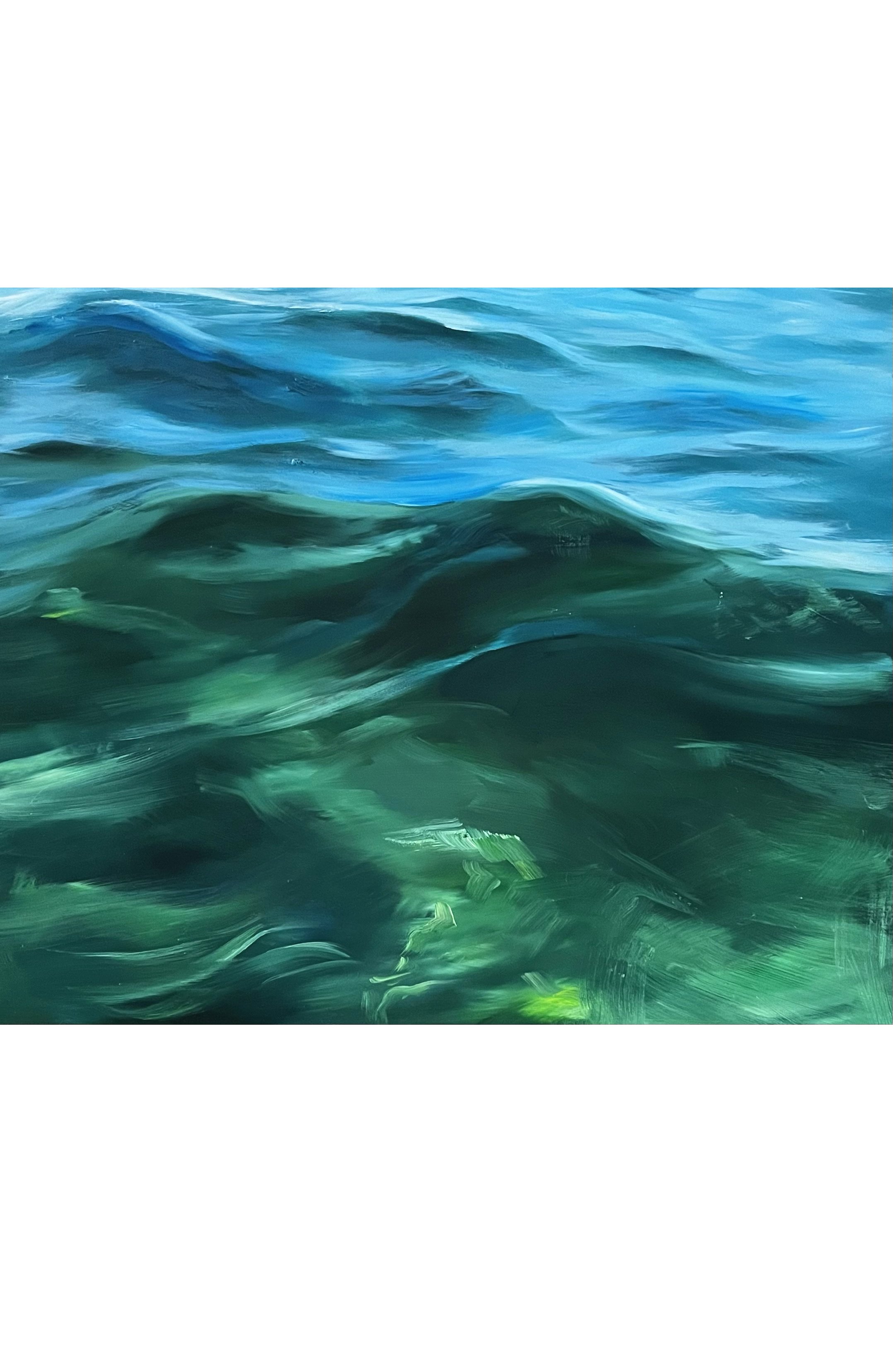 ‘Diving into the Sea’ is hand painted in acrylic on canvas textured paper. The original measures 20 x 16 inches and will be framed in a white wooden frame, the overall size, including the frame, will be 22 x 24 inches (please message me to discuss other colours if you’d prefer).
